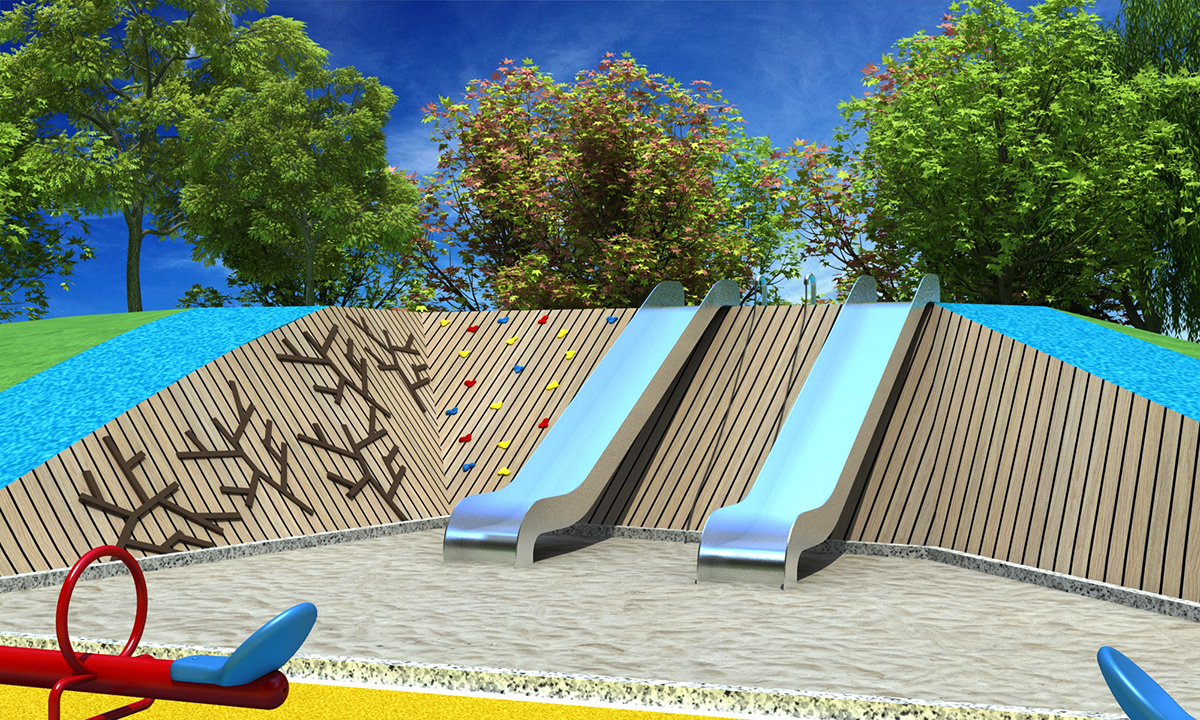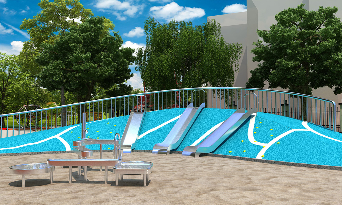 304不锈钢:滑梯采用304不锈钢,拉丝面,壁厚不小于3mm。