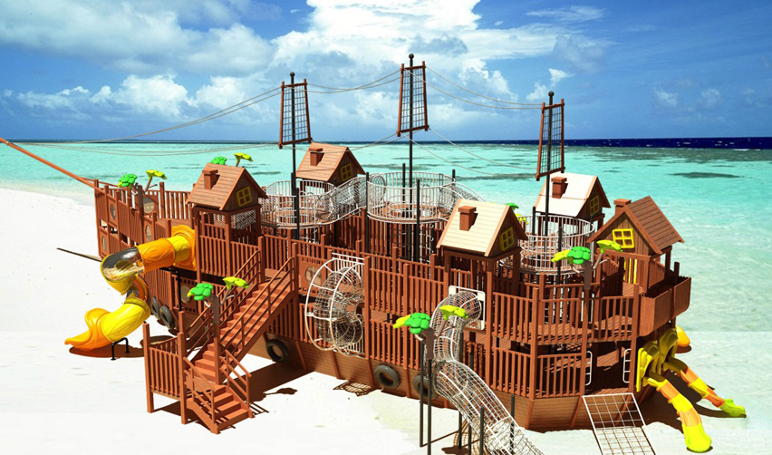 大型组合木质滑梯