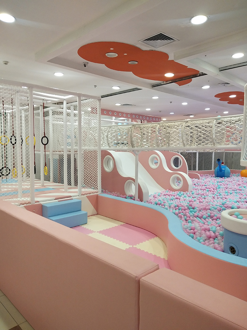 河北燕郊新世界百货是一个商超休闲一体化的场所,位于燕郊比较繁华的区域,客户流量比较大。河北燕郊新世界百货与玩具厂商高乐迪携手一起打造孩子休闲娱乐场所——淘气堡儿童乐园。