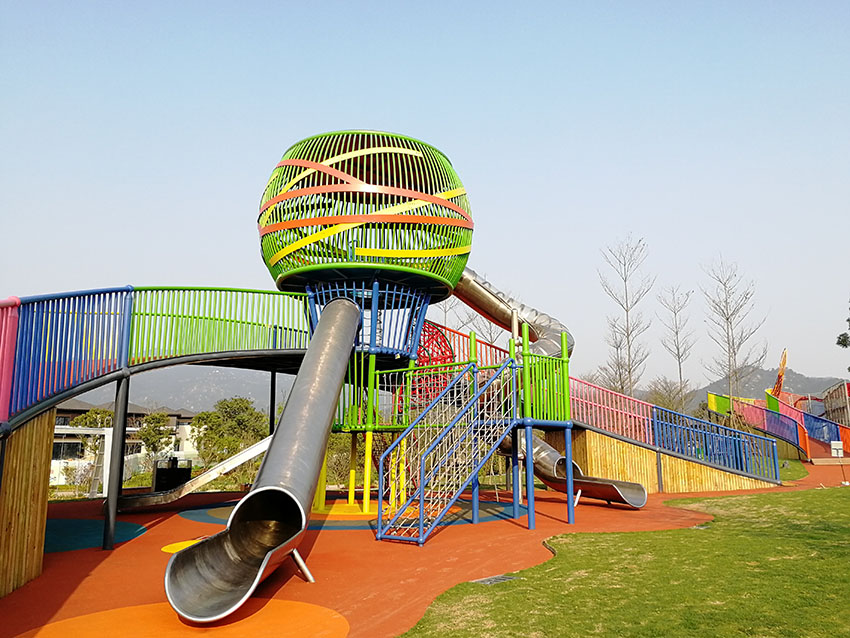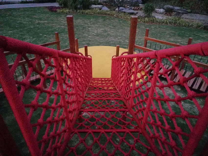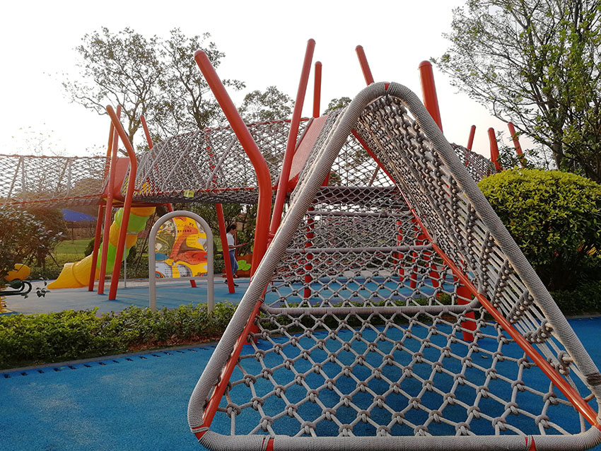 攀爬网笼和滑梯结合带给孩子们无限的乐趣,网笼攀爬的艰难过后就是滑梯的畅快,乐趣无限。