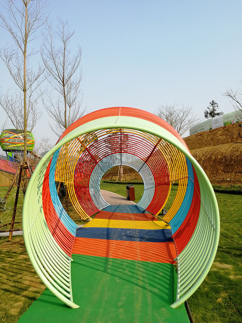 户外定制长廊,七彩的颜色符合孩子们的天性,充满了童真乐趣。