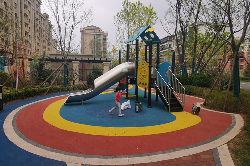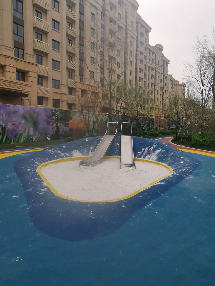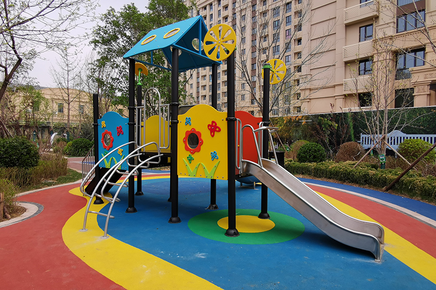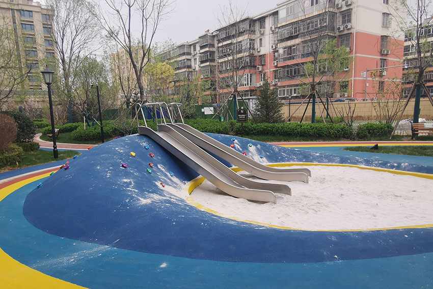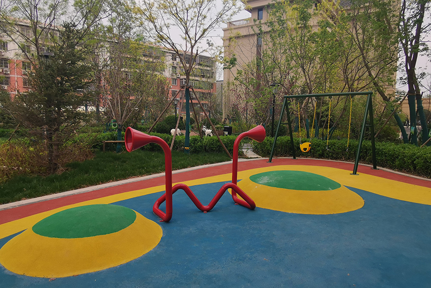 禧悦府位于北京市密云区,总占地面积是56254 m2,拥有住户732 户,属于比较好的居住社区。为了丰富社区儿童的娱乐生活,该住宅区与高乐迪合作,搭建微地形无动力儿童乐园。主要设施有:不锈钢滑梯、微地形乐园、传音筒、秋千、摇摇椅等。