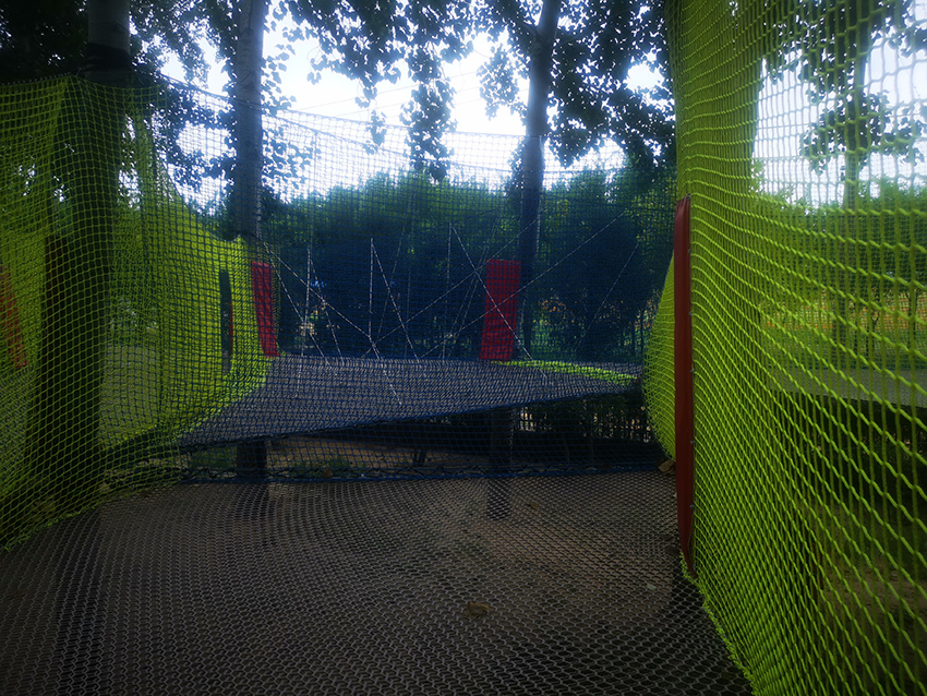 魔网周围装有3米高的围网,无需穿戴繁琐的安全装备就可以尽情在魔网上自由地蹦跳、玩耍,享受被魔网包围的安全感。如果景区里没有足够粗的树木不能够承受游乐的重量,可以采用钢立柱来支撑,打造出一个半空中的无动力乐园。