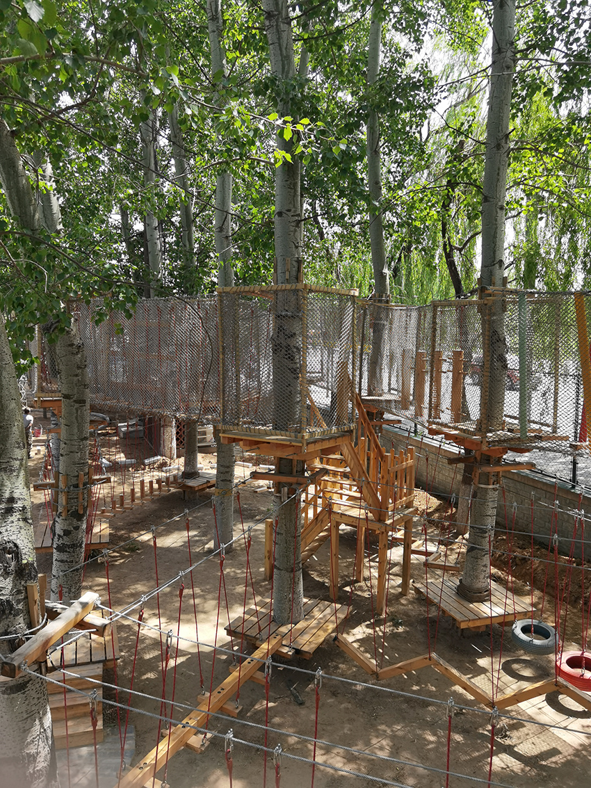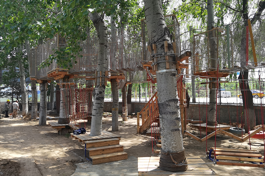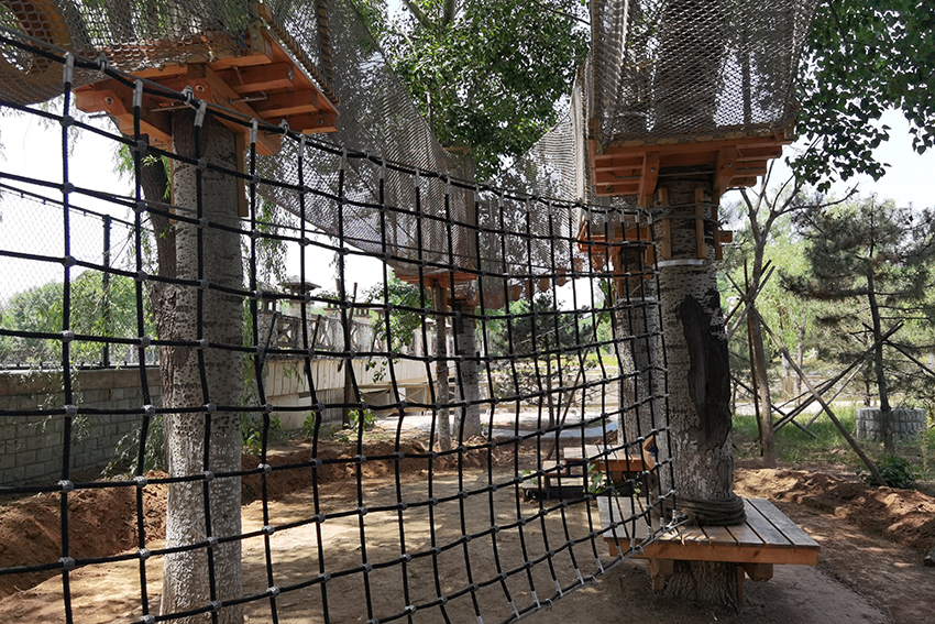 下面是拓展区,适合孩子体能训练,有绳网的保护,高空行走也很安全。