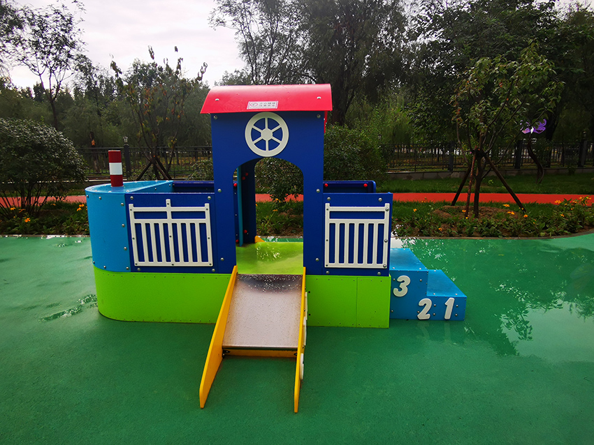 轮船造型的小滑梯,让孩子体验当船长和水手的感受。