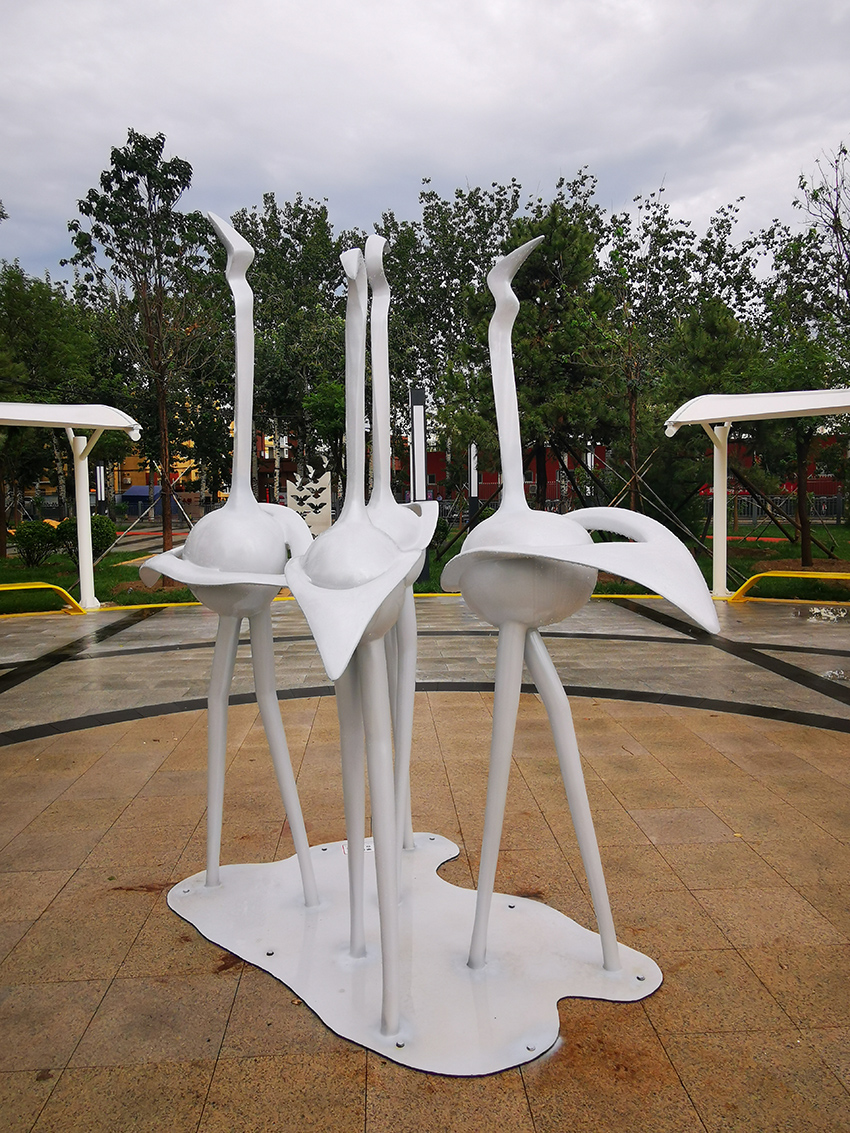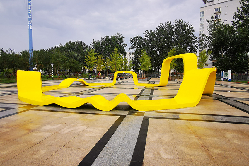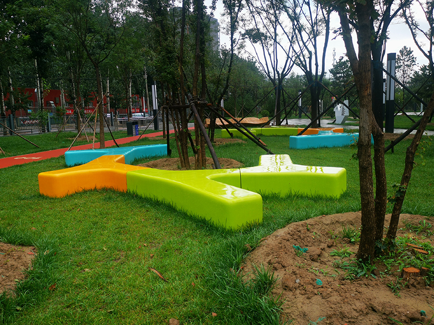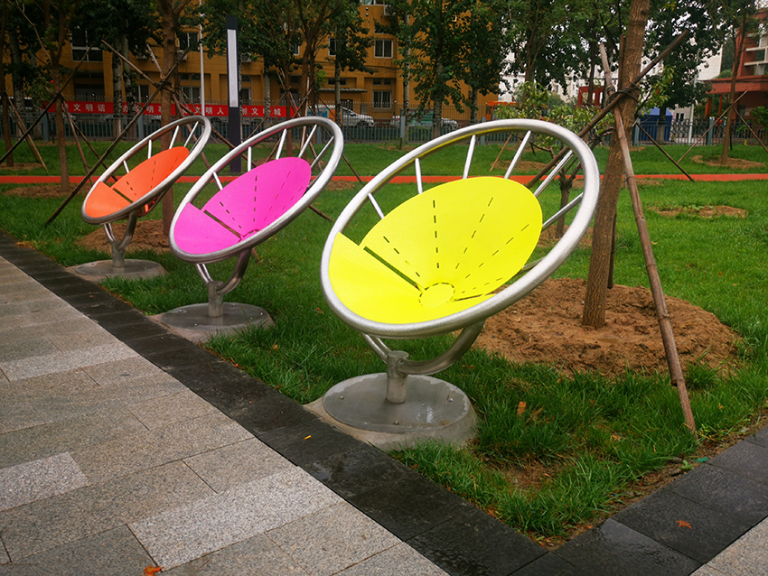 造型别致的椅子供游人们休息,鲜艳的色彩,就像是盛开的花朵。
