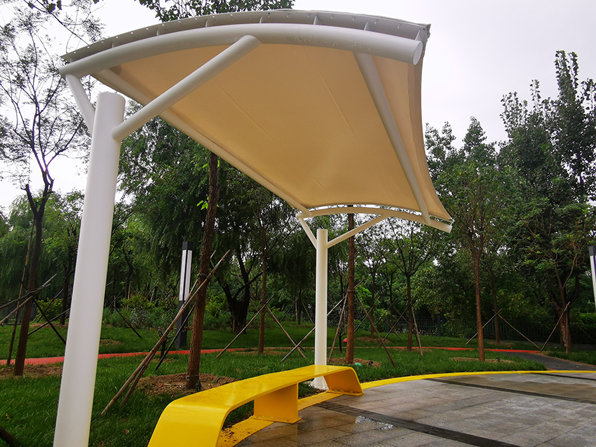 带遮阳棚的横椅,可以让人们休息,又避免日晒和雨淋。