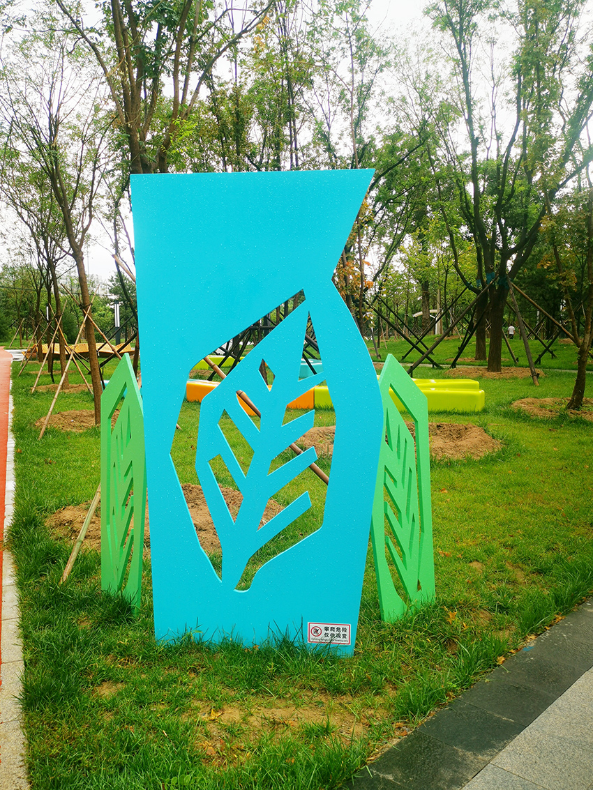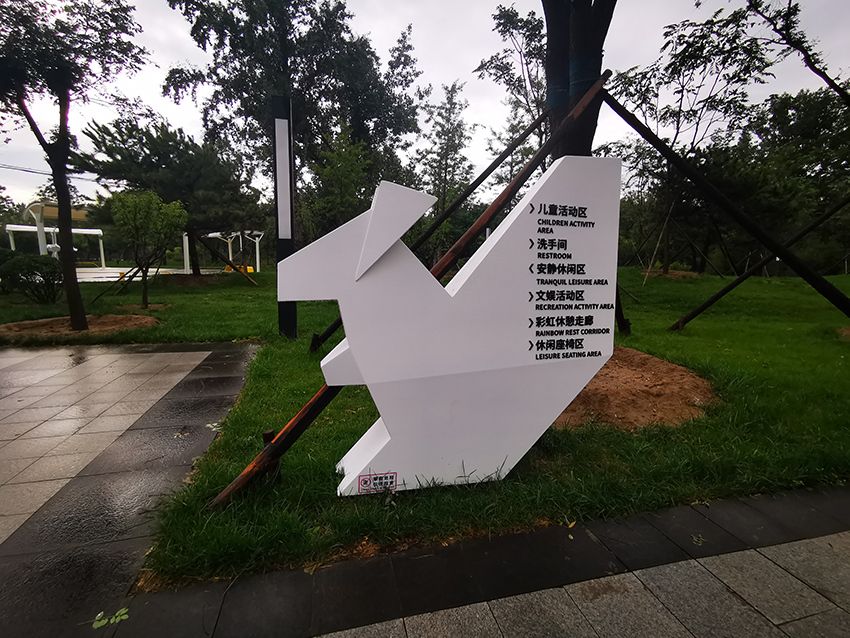 公园内除了绿化之外,还配置景观墙、座椅、秋千、导视牌等景观小品,让每一处都是一个景点。